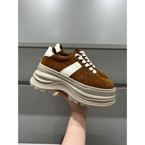 芭慕秀真皮磨砂休闲运动鞋女2025秋季新款舒适厚底增高百搭板鞋女