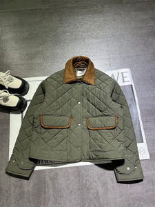 25秋冬新款南油高定miu简约百搭休闲长袖翻领菱格纹短款棉服外套