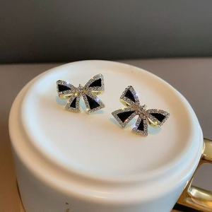 925银针闪钻黑色小蝴蝶结耳钉小巧精致时尚高级感轻奢耳饰女耳饰