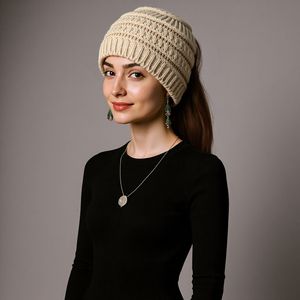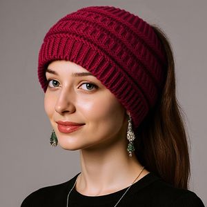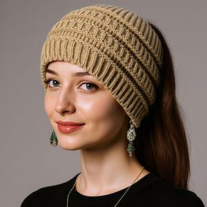 跨境亚马逊新款秋冬女士针织发带加宽洗脸头套空顶马尾毛线帽子