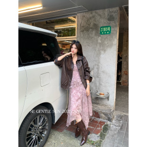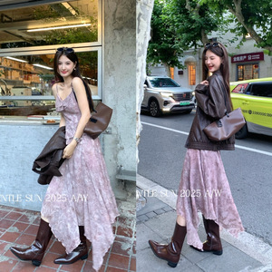 SE GENTLE SUN-优雅休闲都市游牧烫金印花荷叶边吊带连衣裙88440