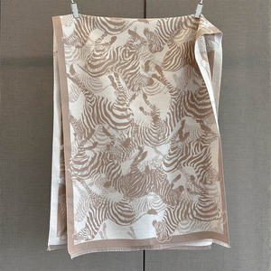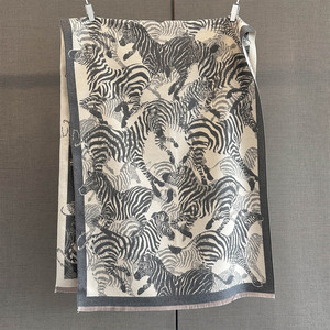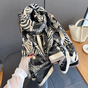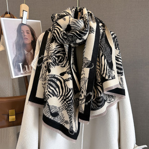 秋季新款仿羊绒提花工艺围巾满印斑马图案女气质百搭外搭保暖围脖