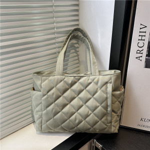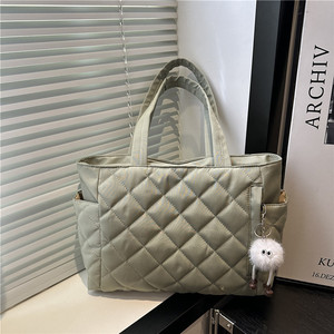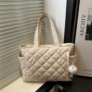 韩系ins棉服包包女2025新款菱格大容量手提托特包通勤购物单肩包