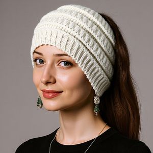 跨境亚马逊新款秋冬女士针织发带加宽洗脸头套空顶马尾毛线帽子