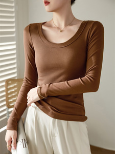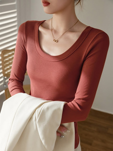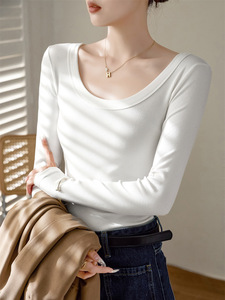 无惧货比优棉螺纹u领长袖T恤女2025秋冬新款修身显瘦上衣打底衫韩