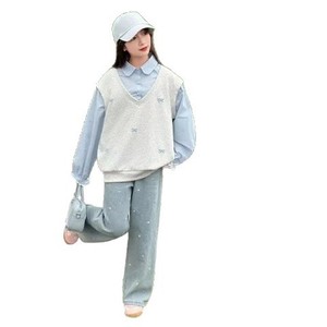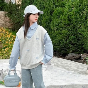 女童假两件衬衫卫衣秋装新款小女孩时尚韩系百搭儿童休闲长袖上衣