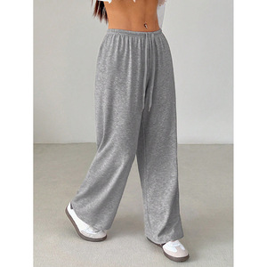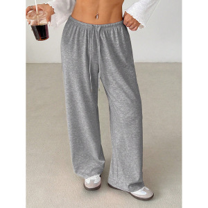 跨境外贸热销欧美风运动休闲裤宽松垂感抽绳松紧腰显瘦阔腿长裤子