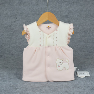 25秋冬新款宝宝夹棉背心卡通绣花马甲公主风格花边婴儿马夹外穿