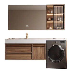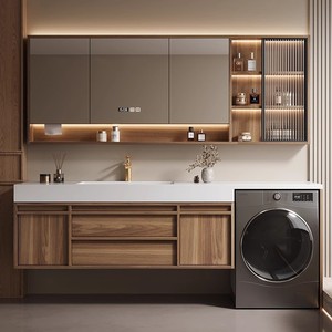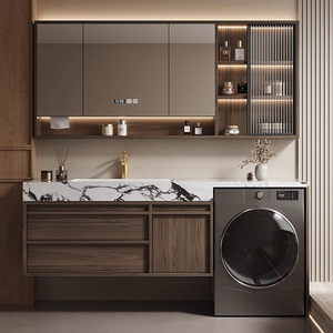 中古风阳台洗衣机岩板热弯一体盆浴室柜组合卫生间洗漱池洗手脸盆