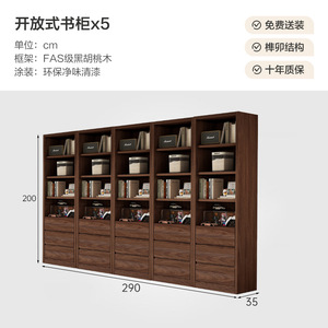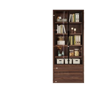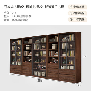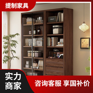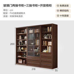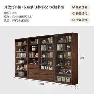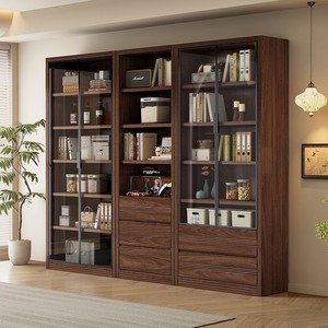 实木书柜储物柜一体家用客厅靠墙展示柜置物架带玻璃门整墙落地柜