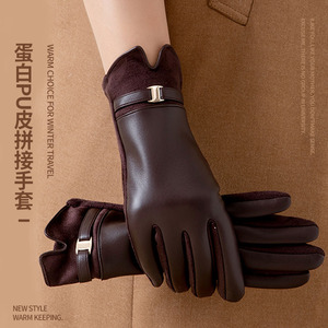 女士手套开车触屏麂蛋白皮冬季保暖皮安哥拉红毛口手套加厚代发