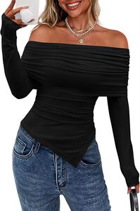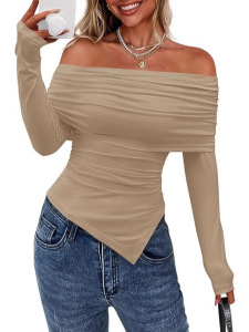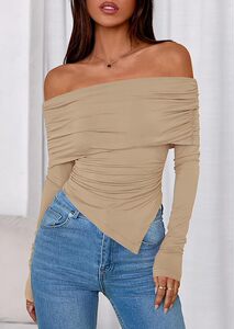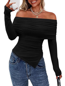 女式长袖衬衫露肩上衣 外出修身 Y2K 衬衫 2025 秋季时尚服装