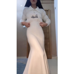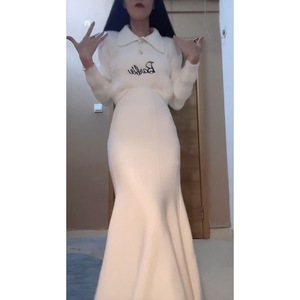 法式白毛衣+白长裙【两件套】