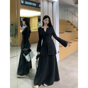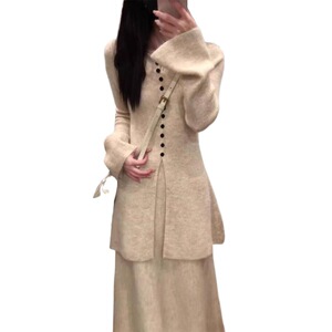 法式韩版超仙毛衣套装女秋冬新款修身显瘦设计感收腰中长半身裙两