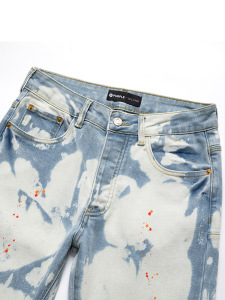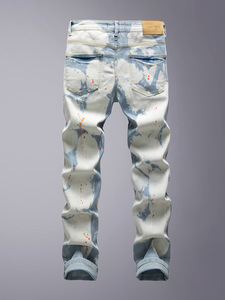 跨境专供purple裤子泼墨破洞牛仔裤男款夜店小脚潮欧美复古正确版