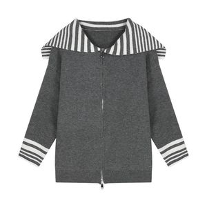 撞色条纹海军领长袖毛衣外套女冬季复古慵懒针织开衫宽松拉链上衣