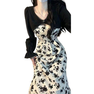 2025年新款春季欲风甜辣高级感碎花连衣裙子女内搭长裙套装秋冬