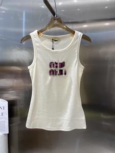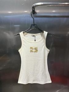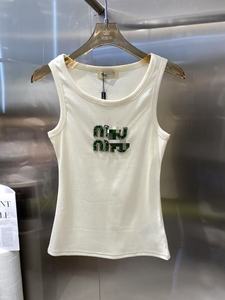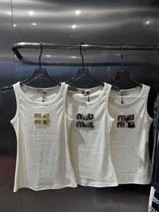 miumiu25夏季新款经典时尚百搭重工钉珠字母背心现货