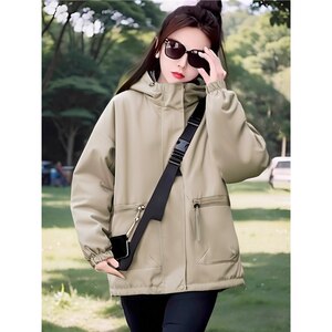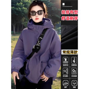 紫色短款冲锋衣外套女春秋2025新款超火漂亮休闲宽松夹克棉衣棉服