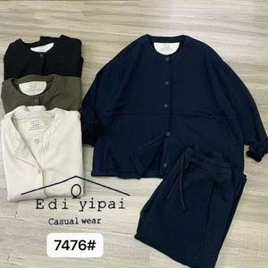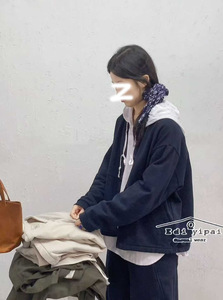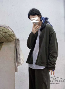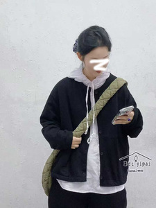 圆领拼接新款上衣女纯棉秋季纯色休闲外套百搭卫衣宽松