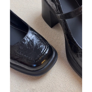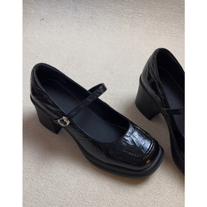 羊皮版~法式复古一字扣粗跟玛丽珍小皮鞋女通勤百搭黑色单鞋