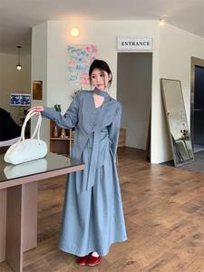 法式复古套装女秋季2025新款长袖开衫衬衣高腰显瘦半身裙两件套潮