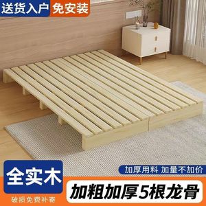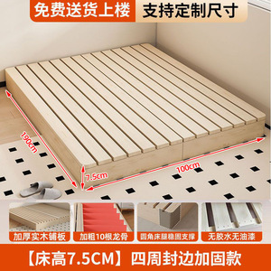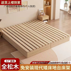实木日式榻榻米床落地式出租房折叠床架现代双人排骨架卧室木板床