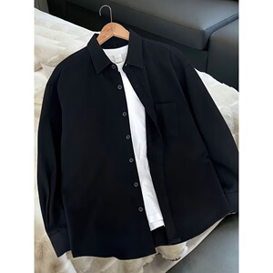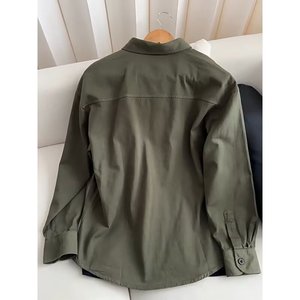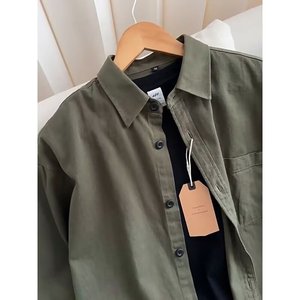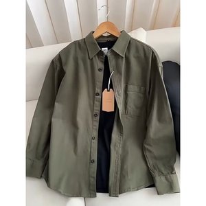 日系复古绿色工装衬衫男款春秋季潮牌休闲宽松长袖衬衣外套