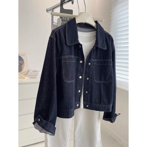 chao推~复古工装短款牛仔外套女!2025秋款百搭显瘦翻领休闲上衣