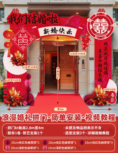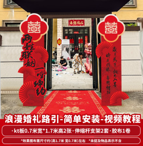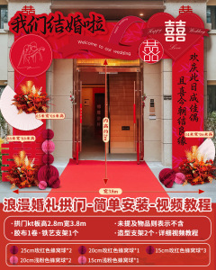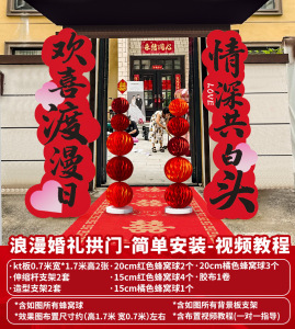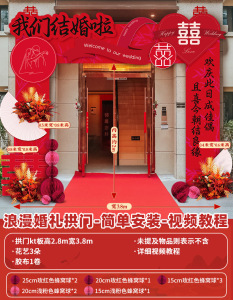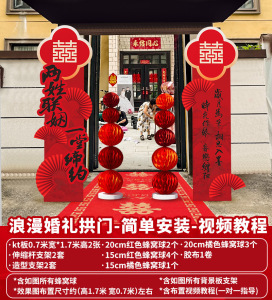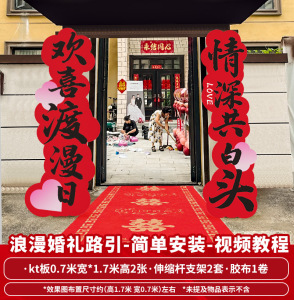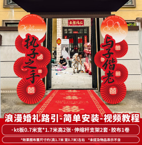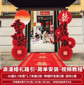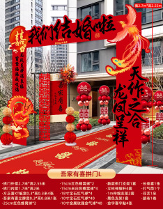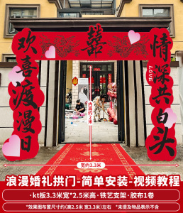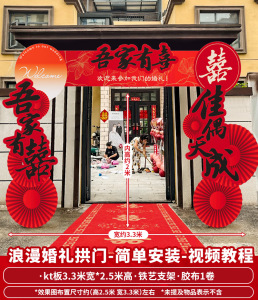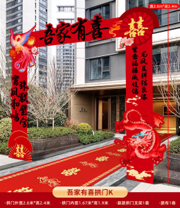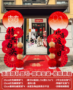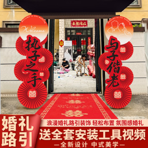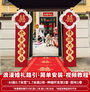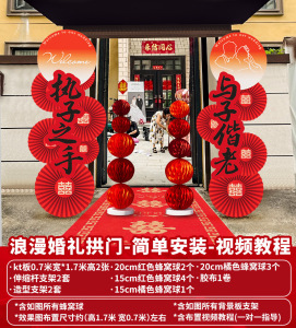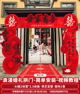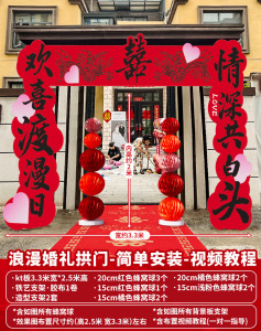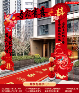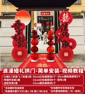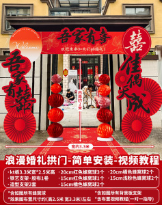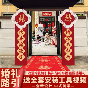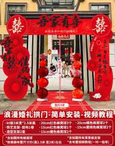 结婚礼大门口布置拱门装饰路引牌农村院小区单元婚庆迎宾立柱板