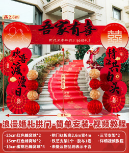 【高2.4m宽2.6m】吾家有喜拱门K3(搭配蜂窝球+新款支架1个+花艺+立牌+黑色支架+气球+喜字