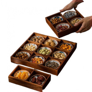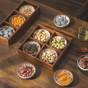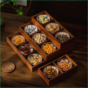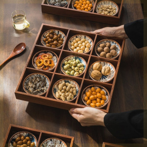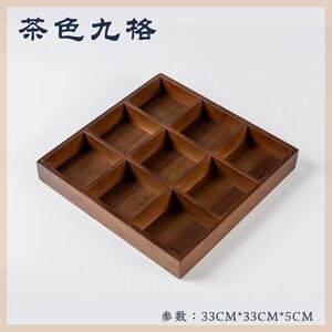 复古色九宫格拼盘家用木质托盘四宫格零食干果盘茶室会所点心拼盘