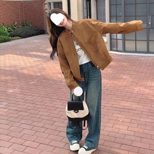 美拉德棕色夹克外套女麂皮绒春秋新款韩版宽松休闲百搭立领上衣潮