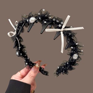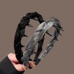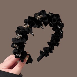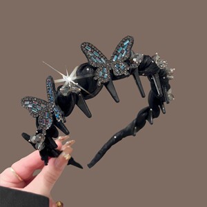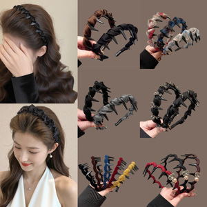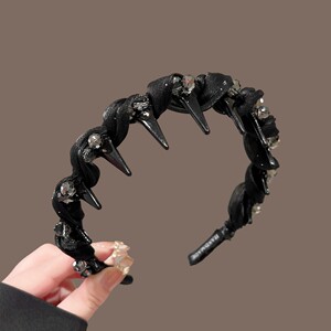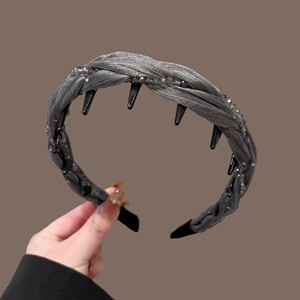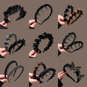 黑色高颅顶发箍女款带齿蓬松头箍2025新款高级感日常外戴水钻发卡