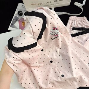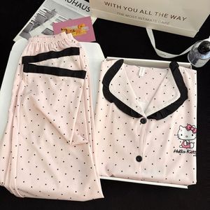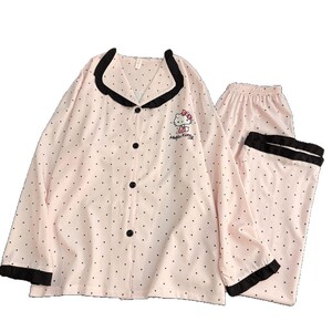 冰丝睡衣女春秋季薄款可爱日系卡通波点开衫长袖套装家居服可外穿