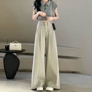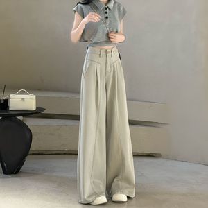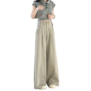 夏季2025年新款宽松阔腿裤休闲垂感牛仔裤女百搭直筒裤灰高腰显瘦