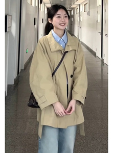 斗篷式立领风衣外套女2025春秋季新款巨好看的小个子气质日系宽松