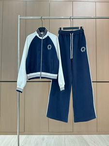 秋季撞色拼接休闲套装时尚百搭运动上衣外套南油女遮肉显瘦阔腿裤