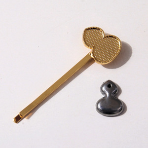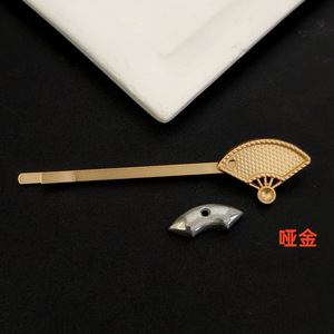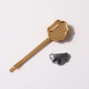 南朵饰品手工diy宋锦一字凹槽底胚贴布艺碎发卡国风 哑金饰品材料