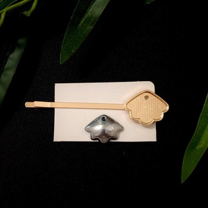 宋锦贝壳底托发夹耳钉
