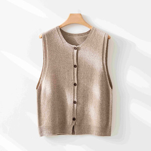 【澳洲100.美丽诺羊毛】时髦叠穿圆领针织开衫女马甲无袖背心外穿