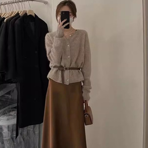 时尚气质设计感百搭套装2025年秋季新款针织衫高腰显瘦a字半身裙