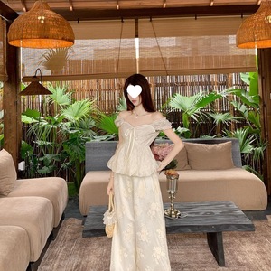 法式系带显瘦花苞蕾丝衫高腰阔腿休闲长裤2025夏季新款时尚套装女
