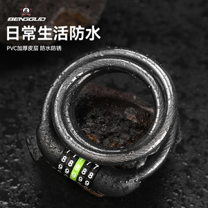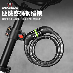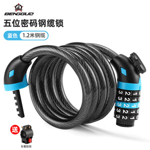 蹦果自行车锁 山地车防盗锁五位密码钢缆锁公路车密码锁 骑行装备
