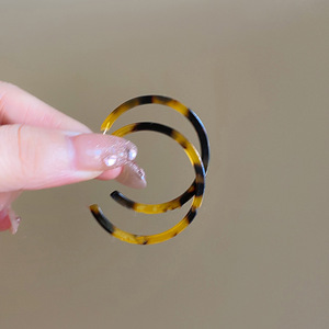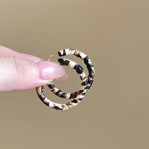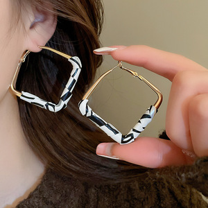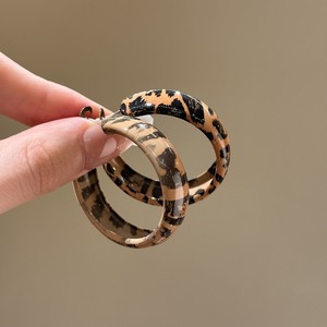 银针布艺豹纹几何圆形菱形耳圈欧美秋冬款气质耳钉小众高级感耳饰