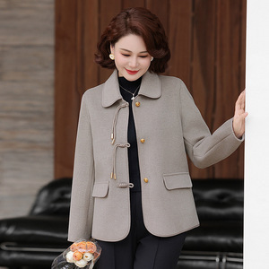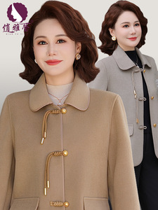 俏雅莹2025秋季中老年女装双面呢50-60岁妈妈装翻领气质纯色外套