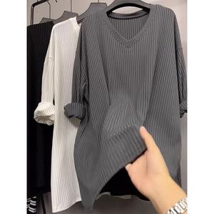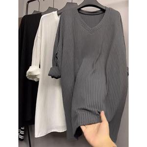 秋冬2025年大码中长款胖MM内搭长袖休闲领打底衫女恤宽松上衣春秋