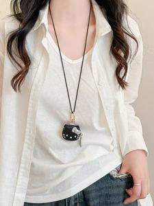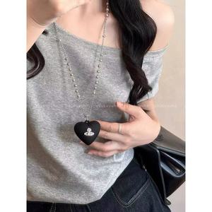韩系简约爱心花朵吊坠长款项链小众设计感极简个性轻奢时尚项链女