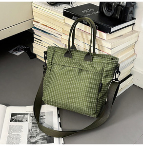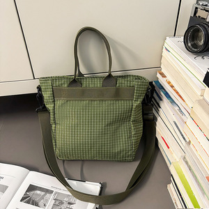 大容量尼龙布包包2025新款时尚简约格子手提大包轻便休闲斜挎包女