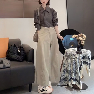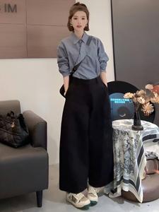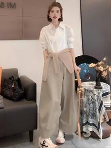 春秋季新款女士设计感穿搭一整套时尚衬衫休闲阔腿裤套装